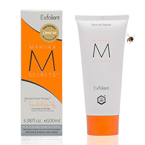 Manuka Secrets Exfoliating Body and Facial Scrub with UMF 18 Manuka Honey 3.38oz, All Natural Ingredients Exfoliant For Clear, Smooth Skin Care