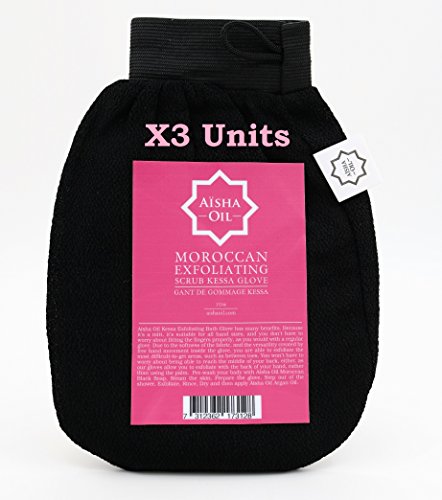 Exfoliating Mitt Kessa Scrub Glove - Moroccan Exfoliating Bath Mitt - Aisha Oil - For Shower, Bath, Hammam, Sauna - Anti Cellulite Massage (3 Units, Kessa)