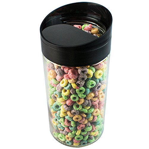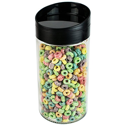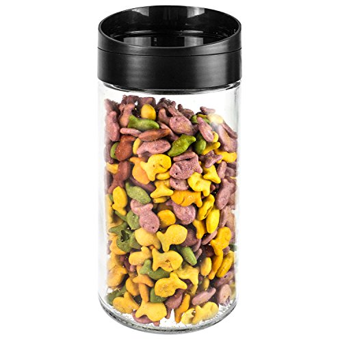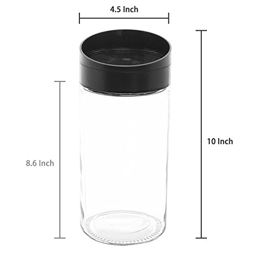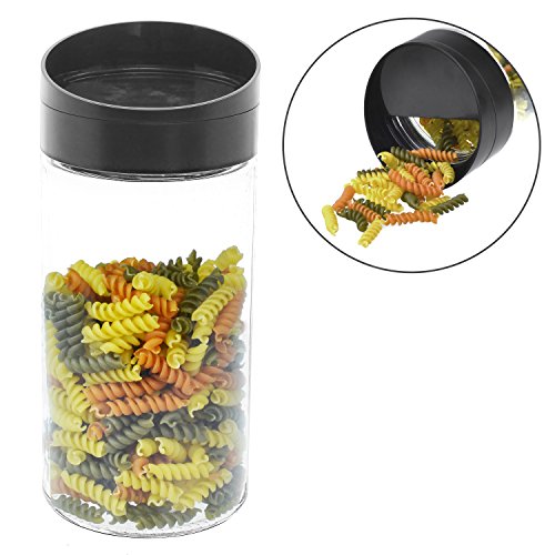 Clear Glass Kitchen Round Canister Jar w/ Twist Easy Pour Black Lid / Dry Food Storage Container