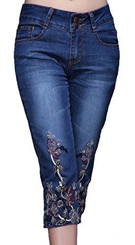 -. Title : ジーンズ 七分丈 レディース デニム カプリパンツ 刺繍入り おしゃれ