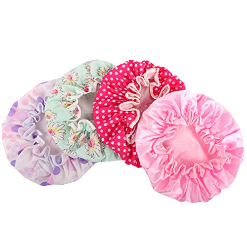 kilofly 4pc Waterproof Reusable Bath Hat Beauty Salon Spa Elastic Shower Caps