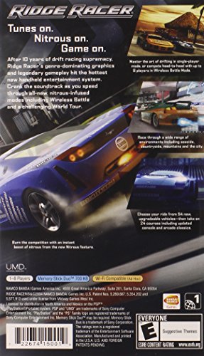 The nitrous boosting racing game everybody knows and loves is now available on the Sony PSP. Scorch some asphalt in 24 circuits of breakneck speed and exhilaration - that's all that stands between you and glory. Beat the clock in Time Attack Mode or test your racing skills against up to 8 players in WiFi compatible Wireless Battle Mode. Drive in style and rise through the ranks to unlock hidden bonuses in World Tour Mode. Features popular racecourses from arcade classic Rave Racer and the entire Ridge Racer series -- old favorites like Seaside Route 765, Crimsonrock Pass and Greenpeak Highlands.