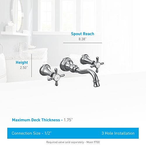 Moen TS42112 Weymouth Two-Handle High Arc Wall Mount Bathroom Faucet Trim Kit without Valve, Chrome