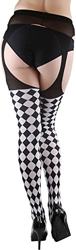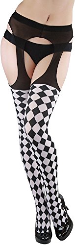 -. Title : ToBeInStyle Women's Harlequin Checkered Suspender Pantyhose Color: Black & White