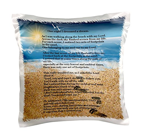 3dRose pc_204469_1 Footprints in The Sand on Beach with Poem Pillow Case, 16" x 16"