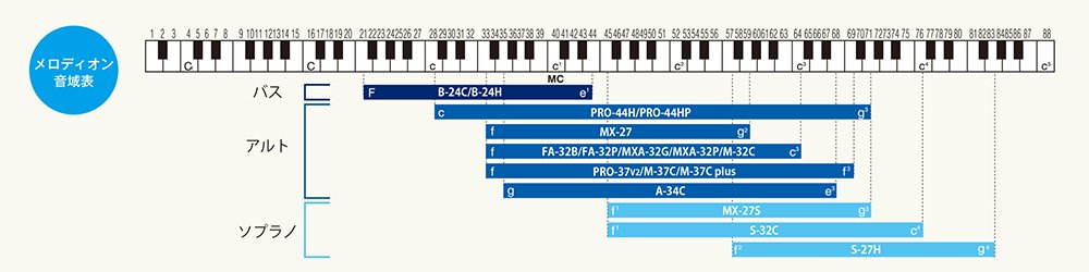 Number of keys and range: Alto 37 keys f to f 3