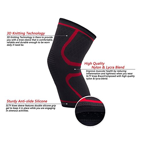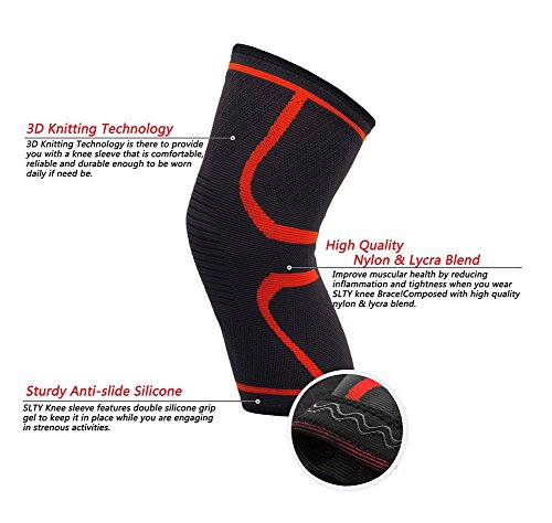 -. Feature : CONSULT OUR SIZE CHART: choose the best knee brace & support suitable for women, men and kids. / BENEFITS: Reduces inflammation/swelling,soreness,stiffness, has heating effect for muscular recovery;Aid in recovery, runners & jumpers knee, arthritis, tendonitis. / LIGHT WEIGH & DURABLE - This is a light weight knee compression sleeve that is designed for all day comfort and long term durability.Material:Nylon & Lycra Blend. / ANTI-SLIP SILICONE: No worrying about the knee brace will slip down your leg, it gives stable compression during gym time, squats, weight lifting, yoga, etc. / SPORTS: Suitable for all sports activities that involve a great amount of stress on the joints like: running, basketball, soccer, football, golf, cycling, tennis, hiking, volleyball, skiing and much more