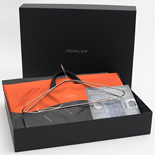 DEGELER has reinvented the garment travel bag - extremely light durable and high-class processed. Developed and tested by frequent flyers on millions of miles around the world. Luggage Dimensions: Unfolded: 42"L x 21"W x 1"H Folded: 21" x 21"W x 1"H Compartment Placement: ? Two external pockets for quick access to travel documents and removable toiletries/cosmetic bag (See our Clear Bag DL62 option) ? Large external Zipper bag pocket for 15" Laptop or A4 documents ? Two Inner pockets to for socks, underwear, and accessories ? Spacious 20"x 16" internal pocket for shirts, blouses, and shoes TITANIUM Hanger: ? High Tech 100% Titanium hanger perfectly suited for pant and skirt fixation ? German Engineered Titanium hanger with seamless welding and light weight (200 grams) ? TRAVEL LIGHTER WITHOUT THE WRINKLES ? Treat yourself to DEGELER's SkyHanger. We want to hear from you about our minimalist lightweight Garment Bag which astounds with attention to detail. 0 |