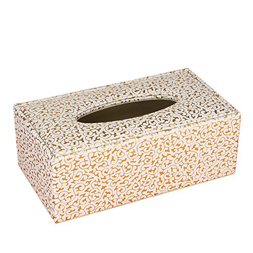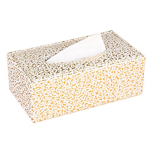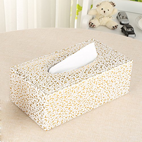 KINGFOM™ Rectangular PU Leather Facial Tissue Box Table Decoration (Gold Decorative Pattern)
