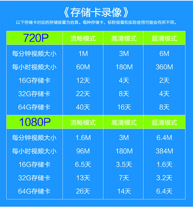 Resolution: Video: H.264 encoding,720p(1280x720)resolution,15 frames/sec.