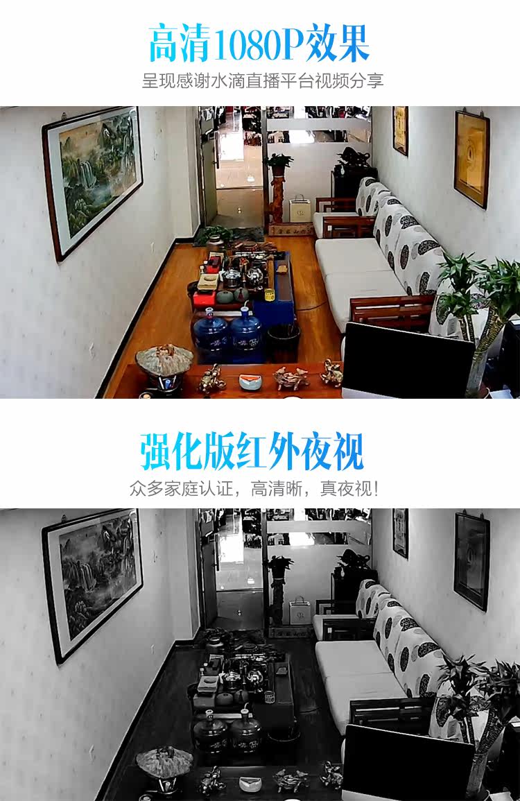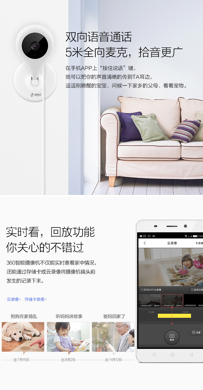 Basic features:real-time video viewing,two-way voice intercom,video in many ways,the family shared,open show