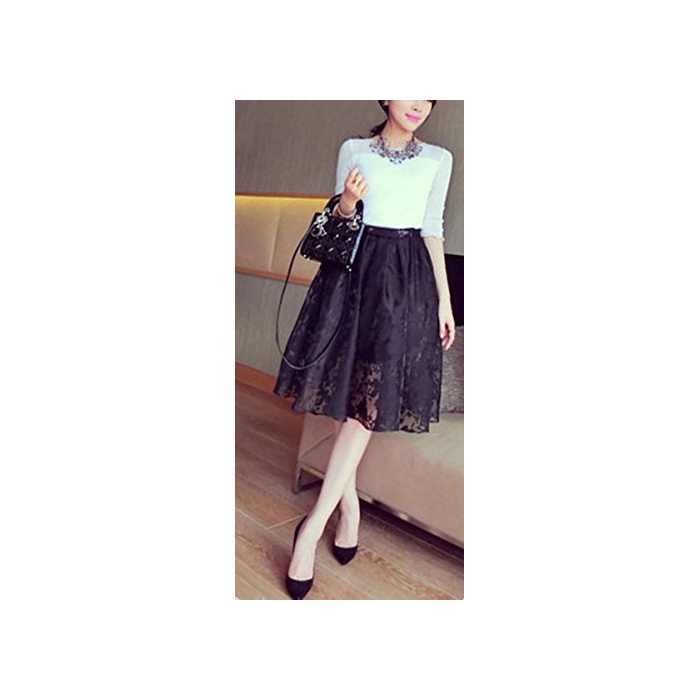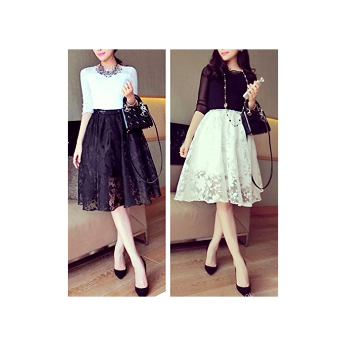 M-DRAGON(M 드래곤) (M 드래곤) M-DRAGON 미디엄 키 시 스루(see through) 꽃무늬 플레어 스커트 (typeSF2) + 미니 타올 세트 / 오팔 가공 / 웨스트 서는 신축성이 있는 고