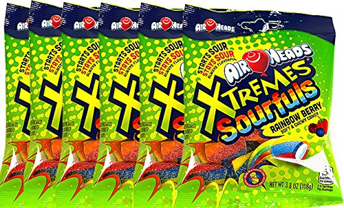 -. Title : Airheads Xtremes Sourfuls Candy, Sweetly Sour, Rainbow Berry Theater Candy Soft & Chewy (Bites 3.8 Oz, 6)
