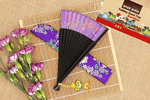 Wise Bird Chinese Fan Japanese Folding Hand Fan, Vintage Retro Style Fan 8" Bamboo/Wood/Sandalwood Fan, Silk Fan Purse Fan, Wedding Favors, Home Decor Fan with Sleeve/Embroidery Tassel - F558