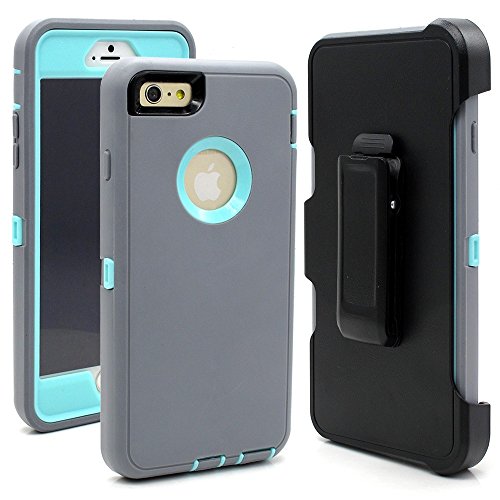 Hybrid Rubber Plastic Impact Defender Rugged Hard Case ,iPhone 6 Protective Case,iPhone 6S Protective Case, Screen Protector Built-in ,With Belt Clip Holster,Blue/Light Blue