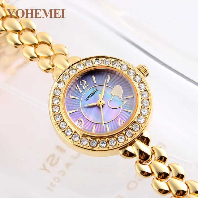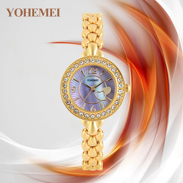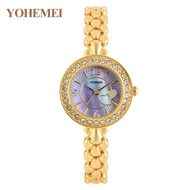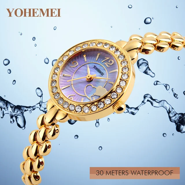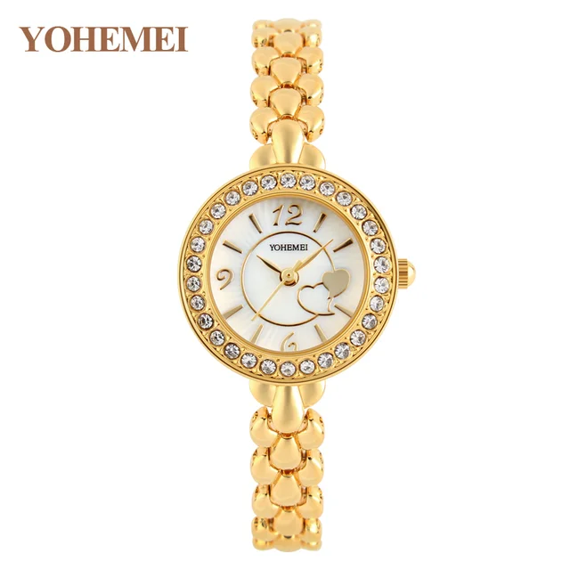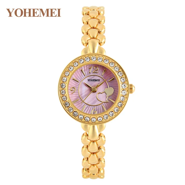 | [해외] YOHEMEI 심장 링크 팔찌 시계 여성 골드 여성 시계 돌 유리 거울 석영 손목 시계 여성 2017 Hodinky |