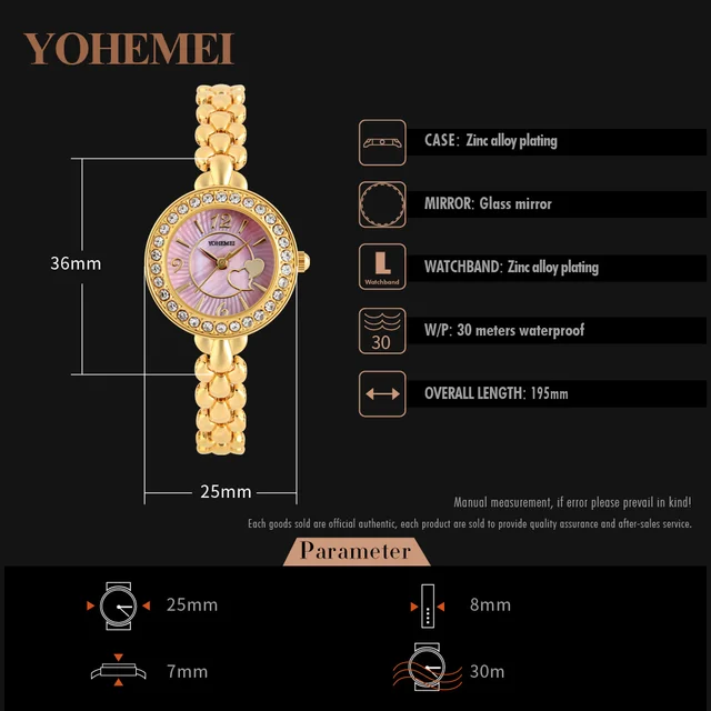 YOHEMEI 심장 링크 팔찌 시계 여성 골드 여성 시계 돌 유리 거울 석영 손목 시계 여성 2017 Hodinky 치수: 케이스 직경: 25 미리메터 케이스 두께: 7 미리메터 밴드 길이: 약 195 미리메터 밴드 폭: 8 미리메터 케이스 직경: 합금 및 스테인레스 스틸 밴드 재질: 합금 밴드 색상: 골드 다이얼 창 소재 유형: 유리 방수: 30 메터 (프레스 어떤 버튼 물) 포인트: 모든 주문은 간단한 패키지 저장 더 이익 구매자, 경우 하나 필요 원래 상자, 당신은 그것을 상자. 부품 포함: 1 x 정품 YOHEMEI 석영 시계 OPP 가방 ![]() ![]() ![]() ![]() ![]() ![]() 포장 상세