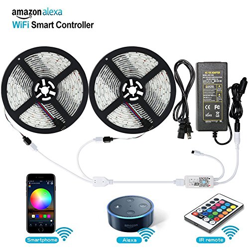 LED Strip Lights, LUNSY Wifi Wireless Smart Phone(Android/IOS) Controlled Light Strip Kit 5050 32.8ft/10M 300 Leds, Rope Lights, Ribbon Lights Controlled by Alexa, IP65 Waterproof (2 pack)