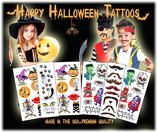 HALLOWEEN TEMPORARY TATTOOS - MADE IN THE USA - OVER 40 TATTOOS