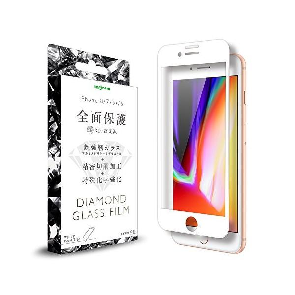 iPhone 8 /7/6s/6 ガラス フィルム 全面保護 耐衝撃 ダイヤモンド ガラスフィルム 光沢 ホワイト