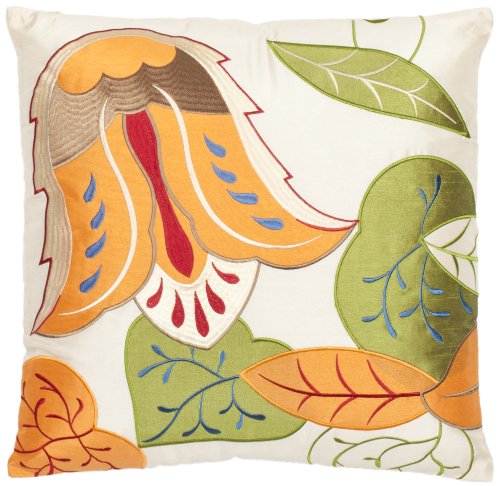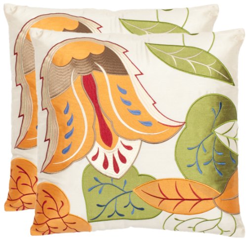 Safavieh Pillow Collection Summer Garden 18-Inch Cream Embroidered Decorative Pillows, Set of 2