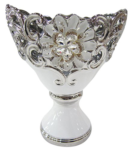 StealStreet SS-DD-YX229W White Bling Collection Footed Bowl Centerpiece