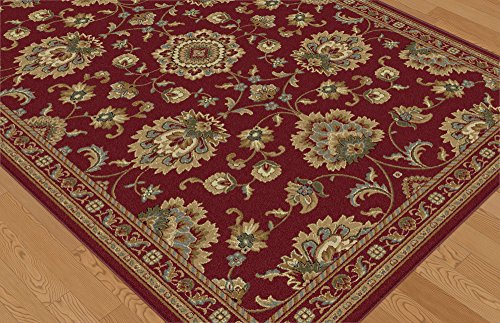 Infuse an air of elegance to any room with this oriental traditional area rug. Ornate floral with intricate border. Scarlet background with fawn beige, bone ivory, brass, fern green, and Cadet blue. Easy to maintain because the soft polypropylene fibers are naturally stain-resistant. Vacuum to restore pile; spot clean with mild detergent and water when necessary; do not bleach.Feature