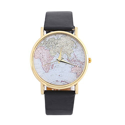 -. Title : DAYANファッションメンズレディースクラシックLuxuryワールドマップレザーバンドアナログクォーツ腕時計ブラック