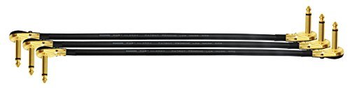 3 Units - Mogami 2524 - 2 Foot - Guitar Bass Effects Instrument, S-Shaped Patch Cable with Premium Gold Plated ¼ inch (6.35mm) Low-Profile, Right Angled Pancake type Connectors