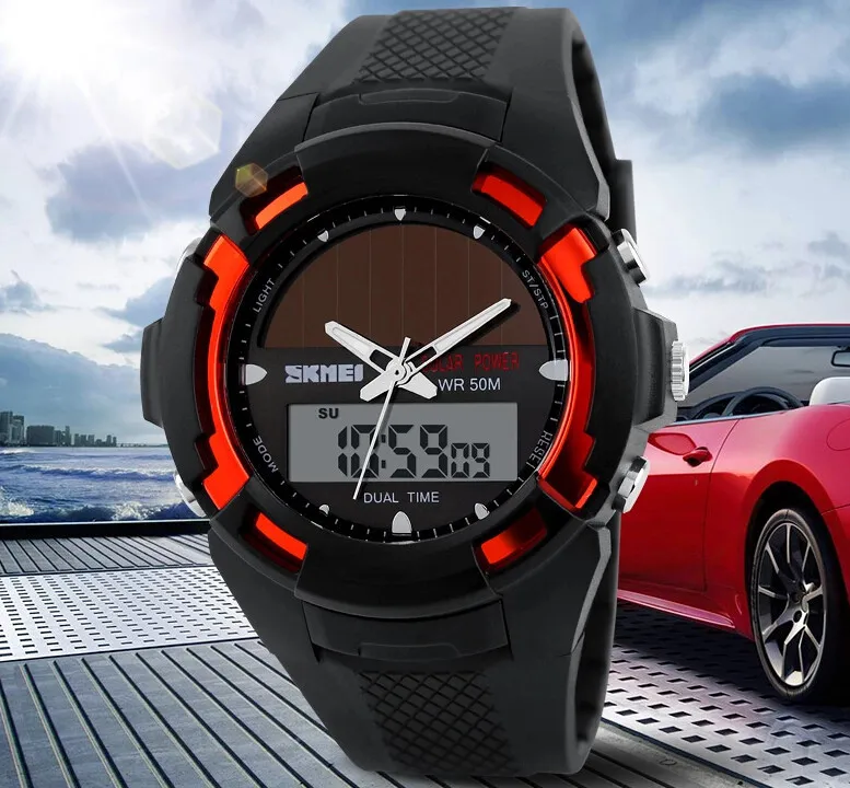 Jam Sport Pria Analog Digital Tenaga Surya SKMei DG1056E