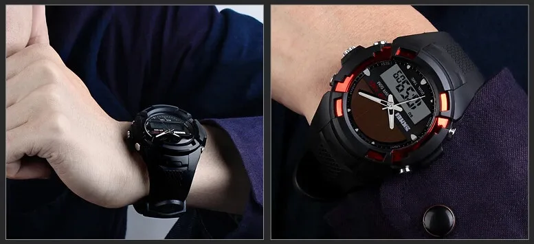 Jam tangan SKMEI 1056E hadir dengan interface penunjuk waktu analog dan digital yang stylish. Dengan design modis, tangguh, dan tahan air hingga kedalaman 50m, jam tangan SKMEI 1056Esangat cocok untuk Anda kenakan sehari-hari, ataupun saat berolahraga. Jam tangan waterproof SKMEI 1056E hadir dengan interface penunjuk waktu analog dan digital yang stylish, dilengkapi dengan lampu LED pada bagian dalam yang dapat menyala dalam situasi gelap.Jam tangan waterproof SKMEI 1056E memiliki fitur waterproof hingga 50M. Bagian strap Jam tangan waterproof SKMEI 1056E terbuat dari bahan material PU yang berkualitas, lentur dan tahan untuk penggunaan dalam jangka waktu lama. Pada bagian belakang, kap penutup terbuat dari bahan material stainless anti air. Kaca Jam tangan waterproof SKMEI 1056E dibuat dengan material yang sangat jernih sehingga Anda tetap dapat melihat angka dengan jelas ketika di dalam air.