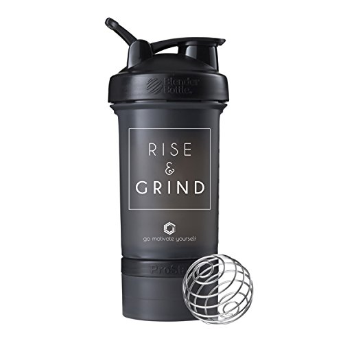 Rise and Grind Blender Bottle ProStak, 22oz Protein Shaker cup with Twist N' Lock Storage Containers