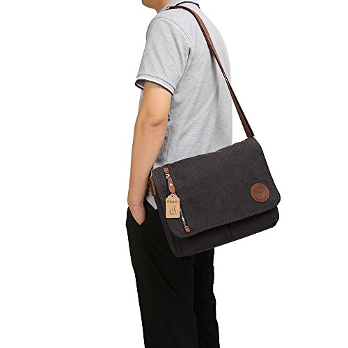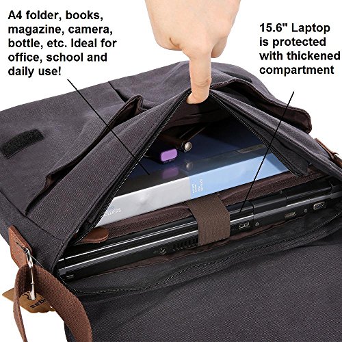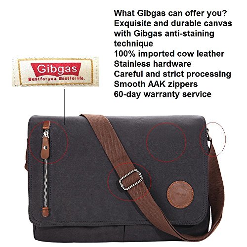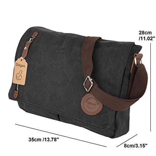 -. Title : Gibgas 14-15.6 Inch Vintage Canvas Messenger Bag Laptop Shoulder Bag Satchel with Laptop Compartment for Men Women School Work (Black, Brown)