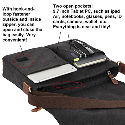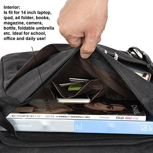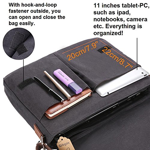 -. Feature : Durable and premium canvas with Gibgas Anti-staining technology. / 14 Inch: 35cm* 28cm* 8cm (L*H*W), 13.78*11.02*3.15 Inch (L*H*W), neither too small nor too large, suitable for work, travel and daily use. A4 documents fit too. / 15.6 Inch with laptop compartment: 40*30*10cm (L*H*W), 15.7*11.8*3.9 Zoll (L*H*W). Big enough with large capacity! / Our superior quality: wear-resistant canvas, 100% imported leather (NOT artificial leather), smooth AAK zipper, rustproof metal, precise machining, multi-functional design. / With hook-and-loop fastener outside, you can open and close the bag easily. With zipper inside, your items can be protected from thieves. Very convenient and safe!