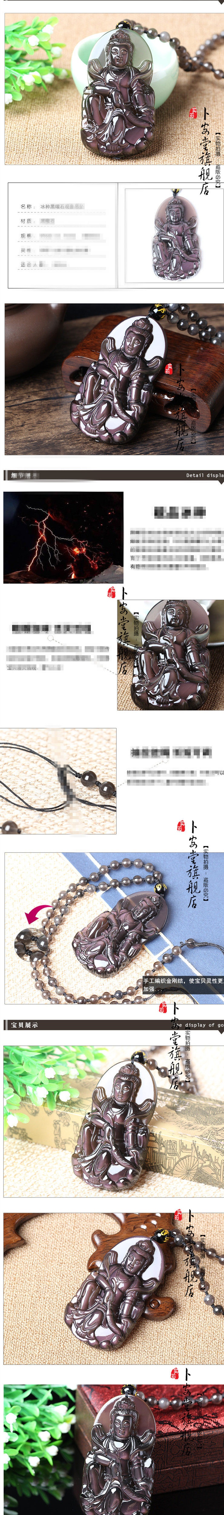 开光天然冰种彩虹眼黑曜石观音吊坠男士佩戴