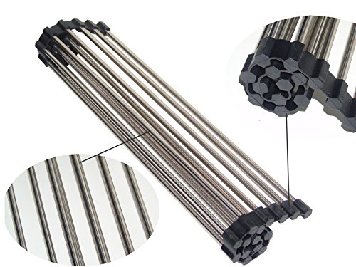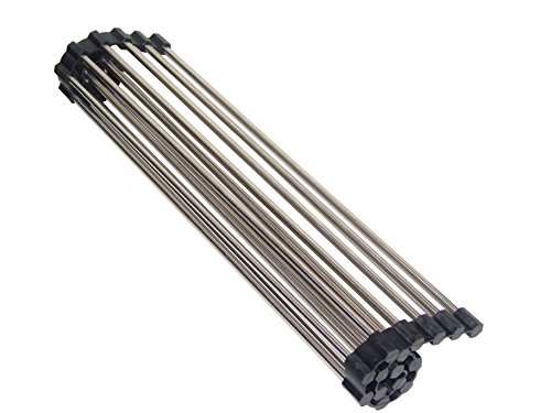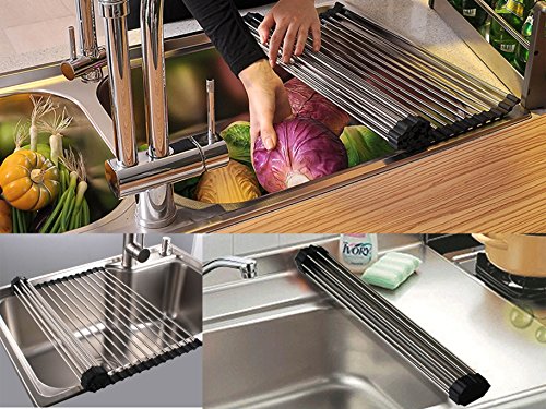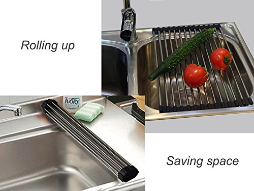 Ceeyali 28cm x 37.5cm Stainless Steel Foldable Roll-up Over Sink Dish Drying Rack (Black)