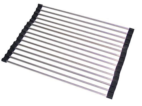 SAVE SPACE - This Drainer Rack is well made and rolls up and goes in a drawer quickly when not in use.Works great and keeps the kitchen sink area looking neat