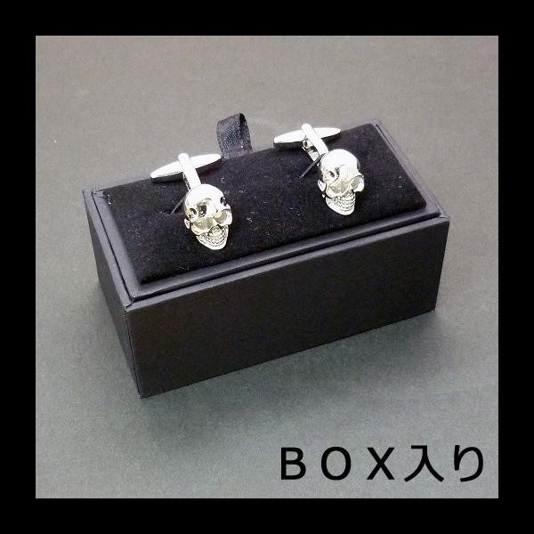 スカルの形のカフスボタンです。袖口をキラキラお洒落に飾って、さりげなくこだわってみませんか?専用のBOXに入れてのお届けになりますので、プレゼントにもぴったりです。 |