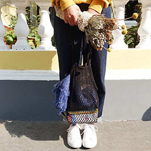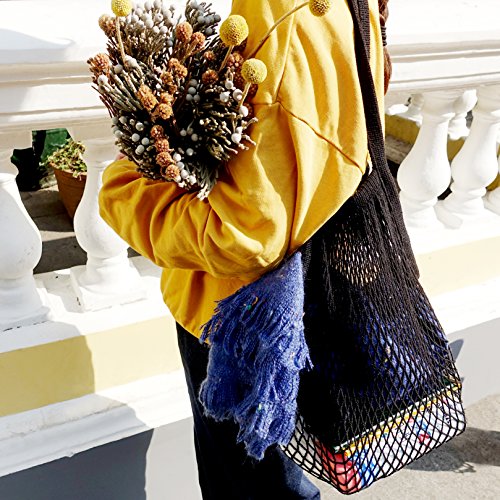 ⛺ SUPER STRETCHY AND LARGE CAPACITY ⛺ Net Shopping Tote are very spacious. The bags can be stretched for providing more capacity. Net Shopping Bags make the best for storing the fruits, vegetables particularly swim gear in the summer and carrying Beach Toys, and related stuff.