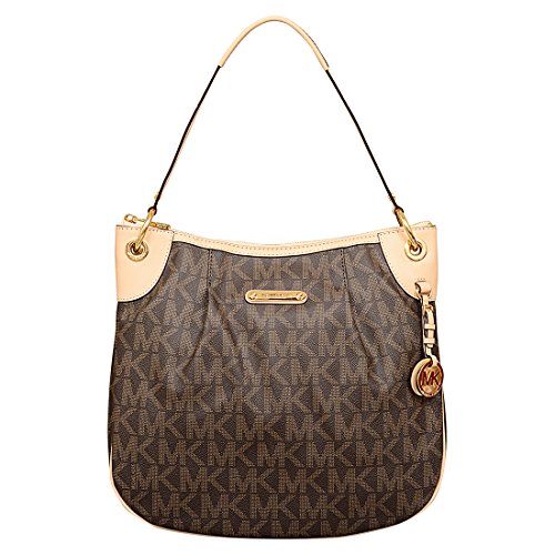 -. Brand : MICHAEL Michael Kors -. Color : Brown -. Department : womens -. EAN : 0787421731699 -. Feature : Made of MK Signature PVC, Natural leather trim and Gold hardware / Single flat leather handle and removable, adjustable shoulder strap / Top zip closure / Five interior pockets plus key leash / 10.25"W x 12.25"H x 2.5"D - Handle drops = 9" and 22" -. ProductGroup : Shoes -. ProductTypeName : HANDBAG -. Title : MICHAEL Michael Kors Large Jet Set Convertible Shoulder Bag in Brown -. UPC : 787421731699