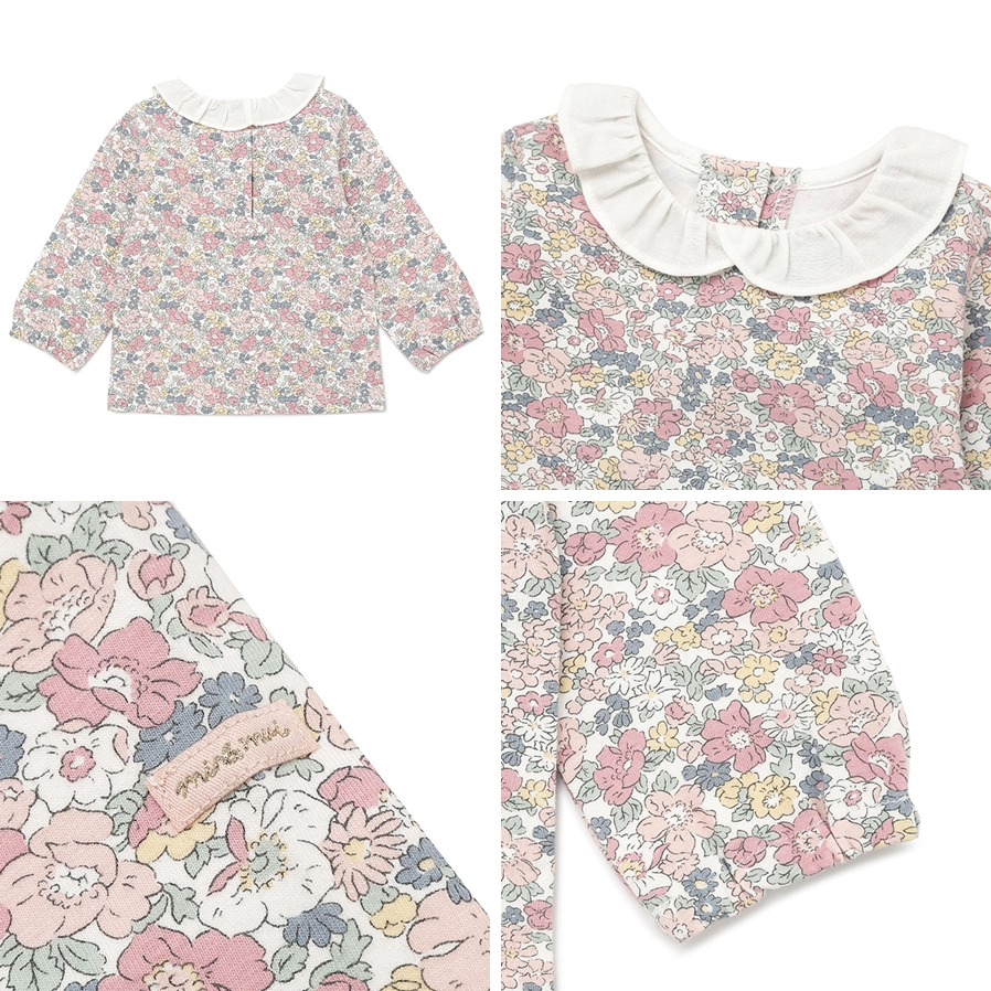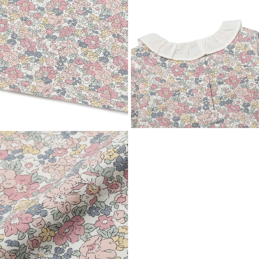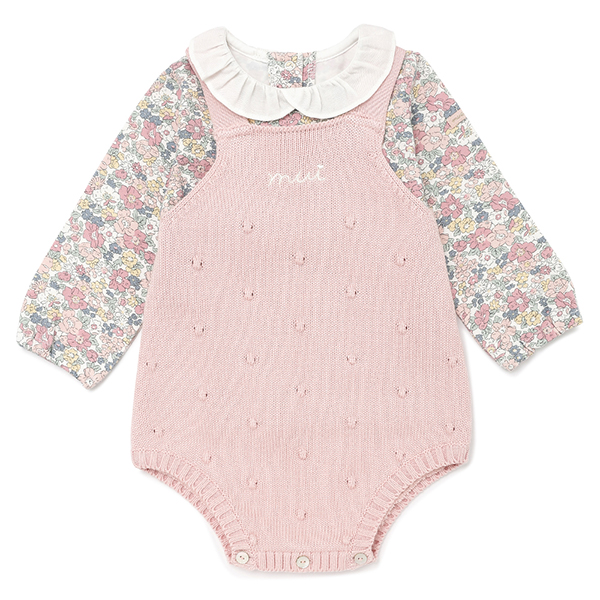페미닌한 핑크 컬러감의 플라워 패턴 상의와 고급스러운 니트 바디수트가 세트로 구성된 활용도가 좋은 아이템입니다.
