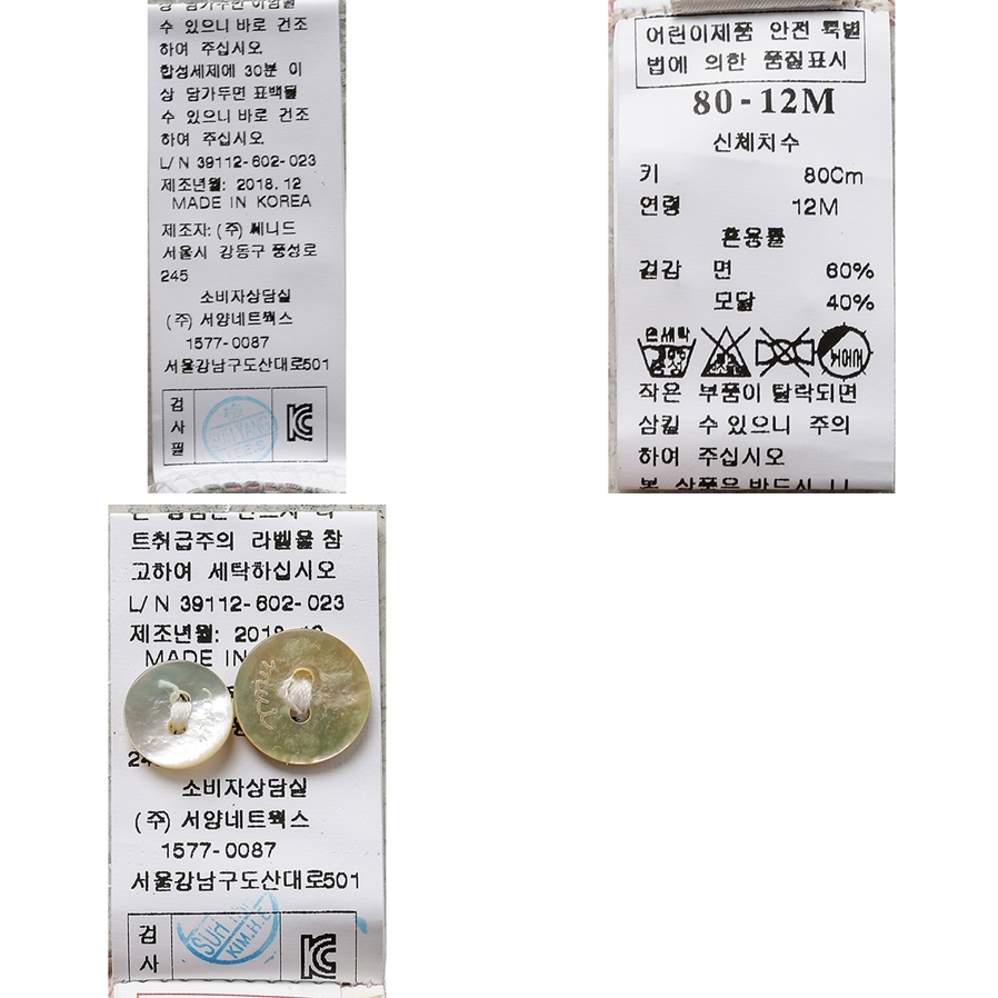 비틀어 짜지 마시오, 삶지마시고 단독 손세탁하여 주십시오(삶거나 담가두지마십시오)