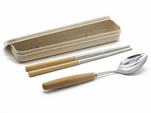 Genubi-2PCS Portable Flatware Spoon Chopsticks Tableware Set 410 Stainless Steel Dinnerware Silver with Travel Box