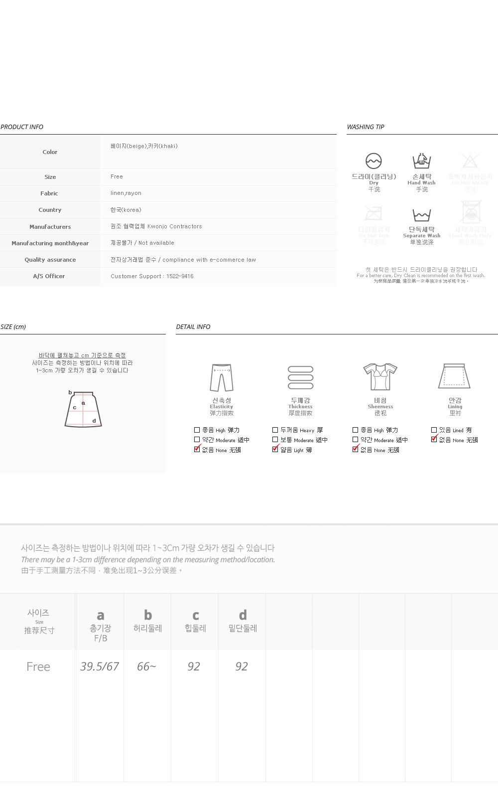 피팅컬러와 사이즈는 베이지, Free입니다.