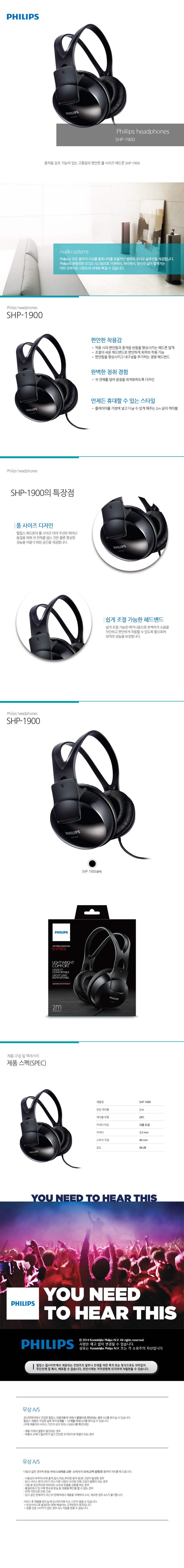 Genuine Philips SHP-1900 Stereo headphones can