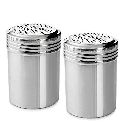 (Set of 2) 10 Ounce Stainless Steel Dredge with Handle, Salt, Pepper, Spice, Sugar Shaker Set