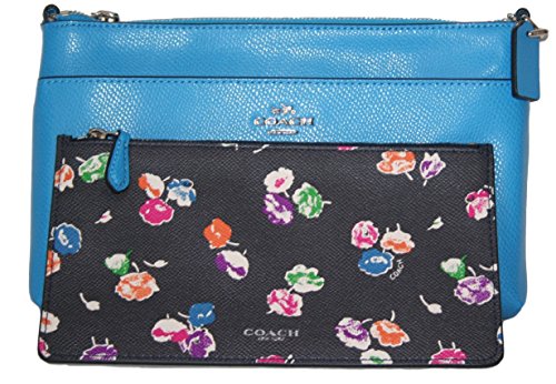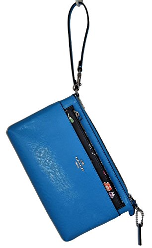 Coach Crossgrain Leather Wristlet with Signature Pop PVC Pouch; in bright and cheery Azure blue with pretty floral pouch