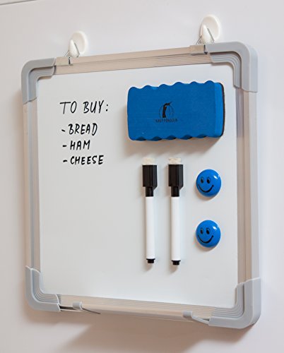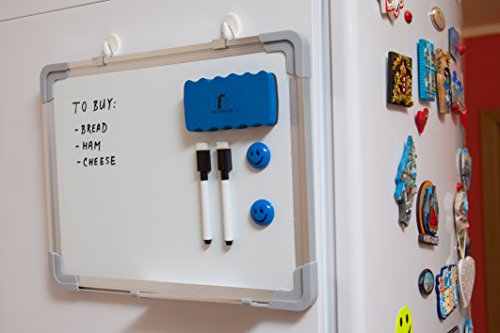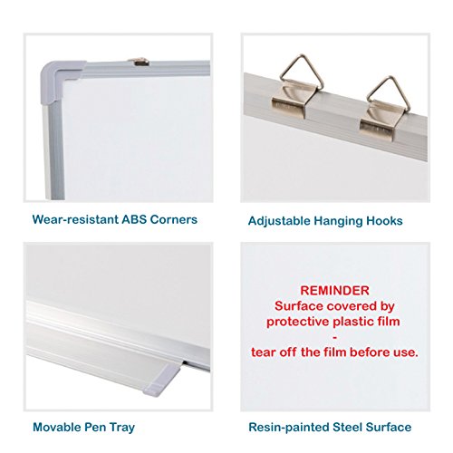 -. Feature : PREMIUM 6 SET - contains 1 whiteboard + 1 magnetic dry eraser + 2 magnetic black markers + 2 magnets. Best value. REMINDER: The board is covered by protective plastic film. Before use, cut along the board frame and tear off the film from the corner. / COMFORTABLE DESIGN AND SIZE - exact size of the board is 15" x 11.8". Movable hanging hooks allow to adjust hanging distance easily. Attachable marker tray is also included to keep dry-erase markers, erasers and other board accessories handy. / TOP QUALITY MATERIAL - resin-painted steel surface is easy for writing, painting, drawing and erasing. The board has heavy duty aluminum frame. / MULTIFUNCTIONAL USE - delivers effective performance when planning and organization is needed. Suitable for home, office, school, dorm room, game room or any other place. Great help for managers, teachers, students and kids. Perfect for presentation, drawing, education and score counting. / 100% SATISFACTION GUARANTEED - Backed By Our Lifetime Warranty. If you for any reason are not happy with the whiteboard, please let us know, we'll refund your money immediately, no questions asked.
