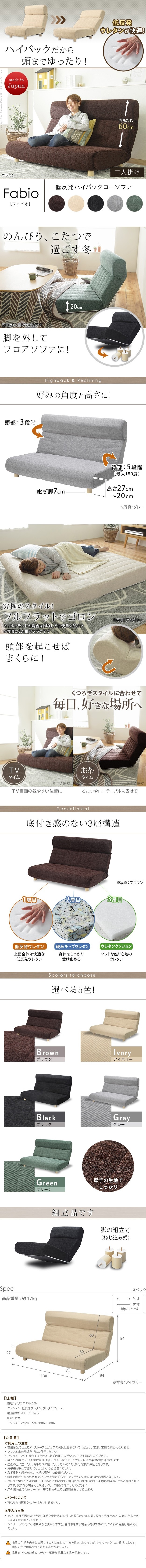 ●ローソファー フロアソファー カウチソファー 二人掛け こたつ 一人暮らし クッション付 ファブリック 低反発 国産 日本製 座椅子 コンパクト リクライニング 脚付き
