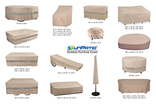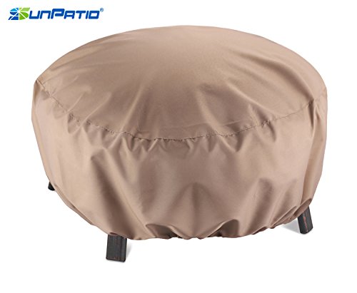 SunPatio Outdoor Round Fire Pit Cover, Kettle Cover, Ottoman Cover, 32"Diax14"H, Lightweight, Water Resistant, Eco-Friendly, All Weather Protection, Beige